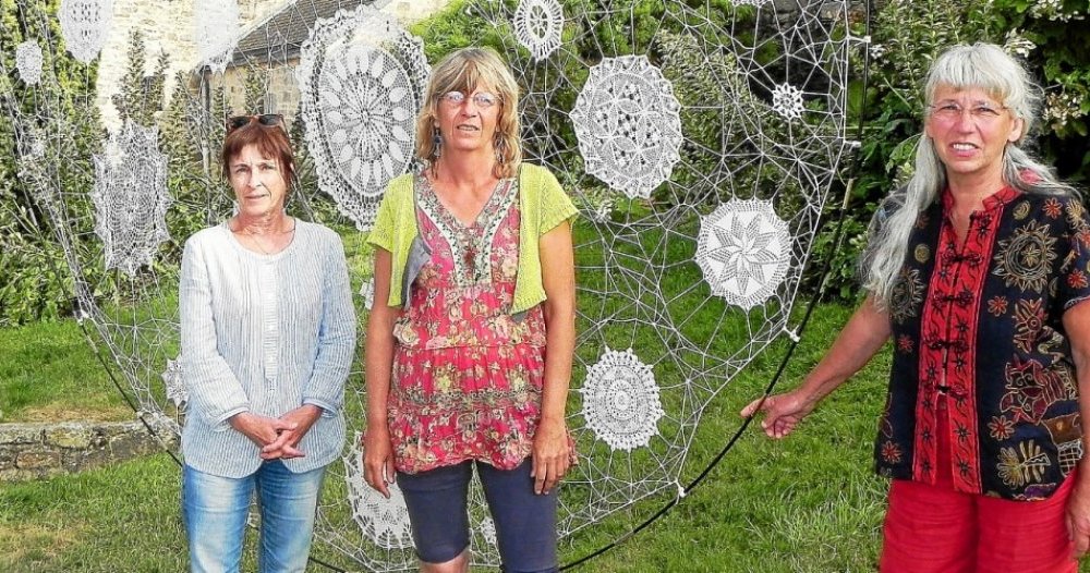 Suite à une recomposition du collectif en août 2022, les Tisseuses de liens ne sont plus que deux : Caroline Mc Avoy et Françoise De Vito qui conservent la même passion. Dans leur atelier de Plourac’h situé en centre Bretagne, comme elles le faisaient à trois avec Florence de Vries, elles recyclent les vieux napperons sortis des armoires et des commodes, chinées dans les brocantes ou encore dénichées dans des greniers. Elles composent avec ces vieilles dentelles en lin ou en coton des structures qui réhabilitent les nappes et napperons en leur offrant une seconde vie. Elles confectionnent de magnifiques œuvres aériennes et oniriques, tissées comme des toiles d’araignées. Leurs petites mains sont unies par le même désir de tendre et d’étendre, pour nouer des liens et pour faire rêver les visiteurs.