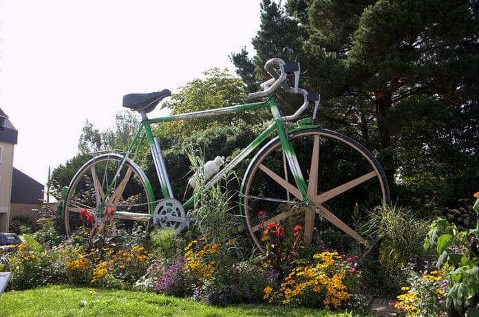 À Noyal-sur-Vilaine, pour célébrer le passage du Tour de France, on a remis en avant le plus grand vélo du monde à l’occasion du passage du Tour de France.