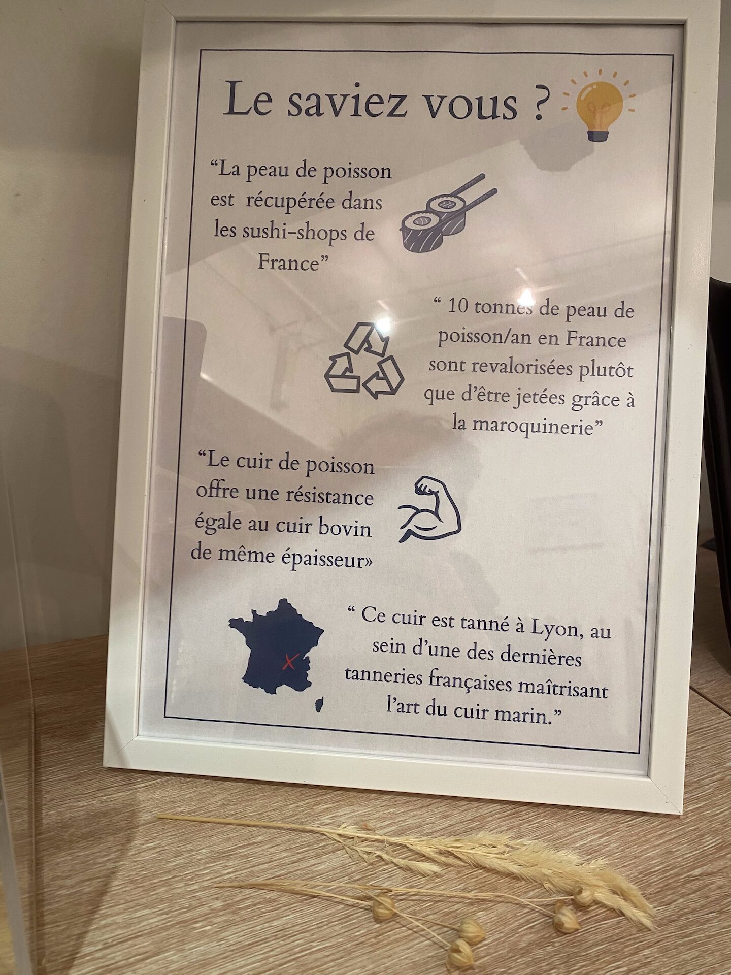 Juste avant d’entrer en formation pour préparer le C.A.P. Maroquinerie à Fougères, un détail a tout changé. En fouillant, en se documentant, le couple découvre qu’il existe en France… deux tanneries spécialisées dans le cuir de poisson. Une matière rare, presque secrète, totalement inattendue.