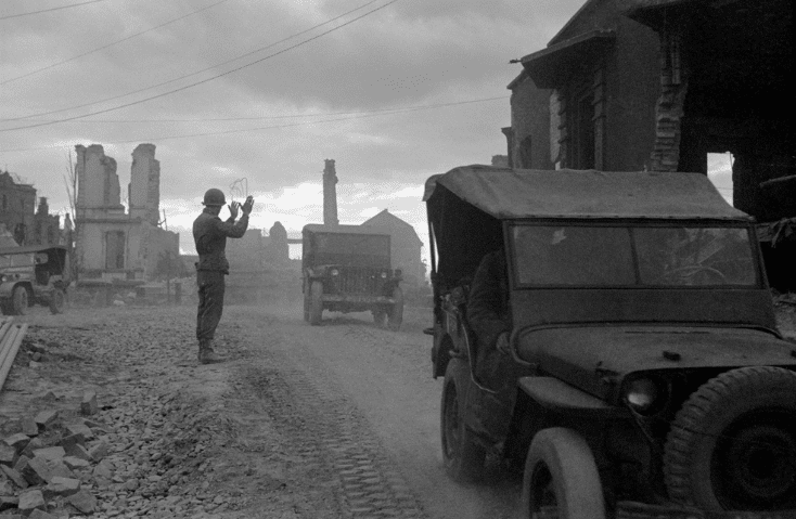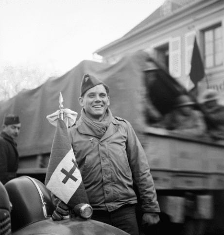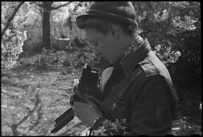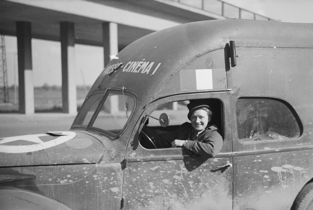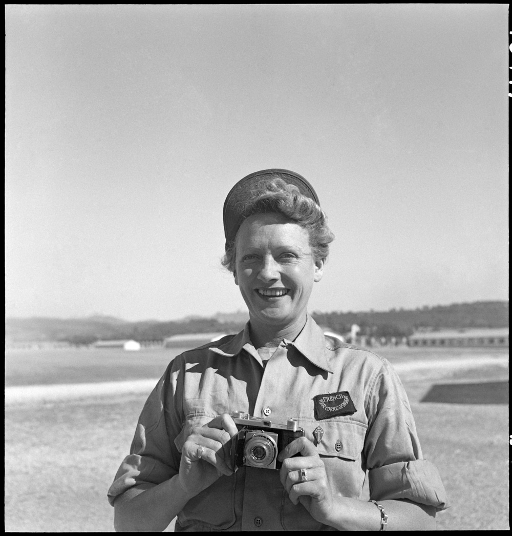La photographe est incorporée dans la Section cinématographique et suit les troupes françaises, notamment les blindés du général Leclerc, sur les lieux de leurs combats lors de la bataille d’Alsace puis en Allemagne.