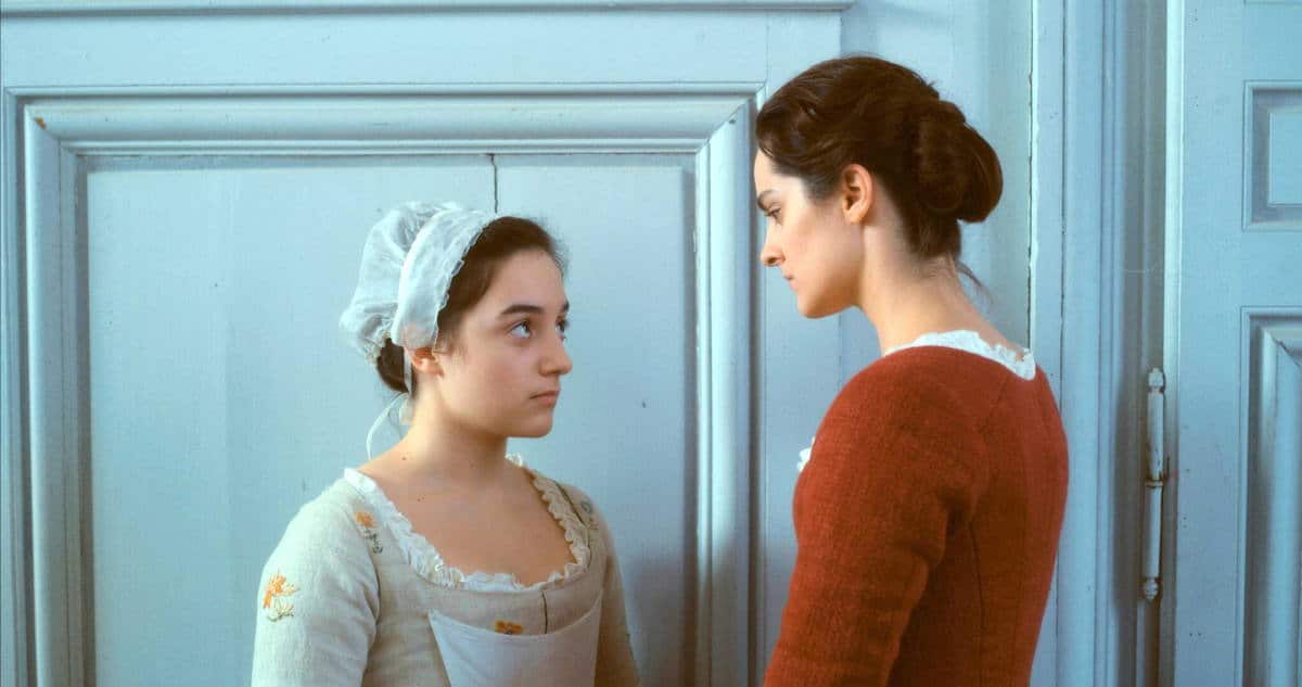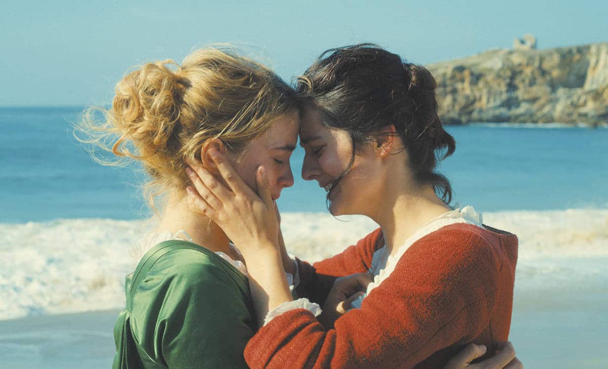 Dès les premières minutes, le ton du film est lancé par un jeu de regards minutieusement réglé entre Marianne (Noémie Merlant) et plusieurs jeunes filles apprenties peintres, toutes filmées en plan poitrine. Tout au long du film, la caméra se concentre sur le visage des actrices, leurs yeux occupant le milieu de l’écran. Les émotions qui se dégagent deviennent quasi palpables. Ces regards pénétrés, les deux actrices se les échangent tout au long du film, à tel point point que les dialogues semblent parfois superflus.