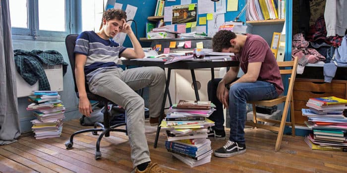Culpabilité de ne pas travailler, stress permanent, compétition nourrie par les candidats, mais également par les enseignants… Loin du stéréotype des étudiants débridés que l’on a coutume d’apercevoir au cinéma, le réalisateur propose de « montrer ce qu’est la réalité de la jeunesse quand elle se trouve sur les bancs de l’école, plutôt que la vision d’une jeunesse désœuvrée ». C’est un pari réussi ! Plus qu’une histoire de grosse galère, le film Première année est avant tout le récit d’une rencontre et des liens qui se créent à cette période de la vie, des liens qui boostent et poussent jusqu’au bout.