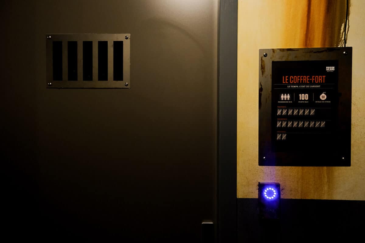 Le temps de comprendre ce que nous devons faire et l’alarme de fin sonne déjà nous invitant à sortir… Nos lumières n’ont pas eu le temps briller. Il faut étudier les lieux, comprendre ce que nous devons faire et redoubler d’ingéniosité, de rapidité ou encore d’adresse. Bien, tentons une nouvelle pièce. Quelques secondes plus tard, la lumière passe au rouge : nous avons marché dans un endroit où il ne fallait pas et l’alerte s’est déclenchée. Peut-être aurons-nous plus de chance dans la suivante. La salle du coffre-fort nous attend et cette fois, nous sommes remontés à bloc ! Une indication sur la pancarte nous prévient : « Le temps, c’est de l’argent ». Nous nous y hâtons… Mais peut-être que nous aurions davantage dû prendre cette indication pour argent-comptant ?
