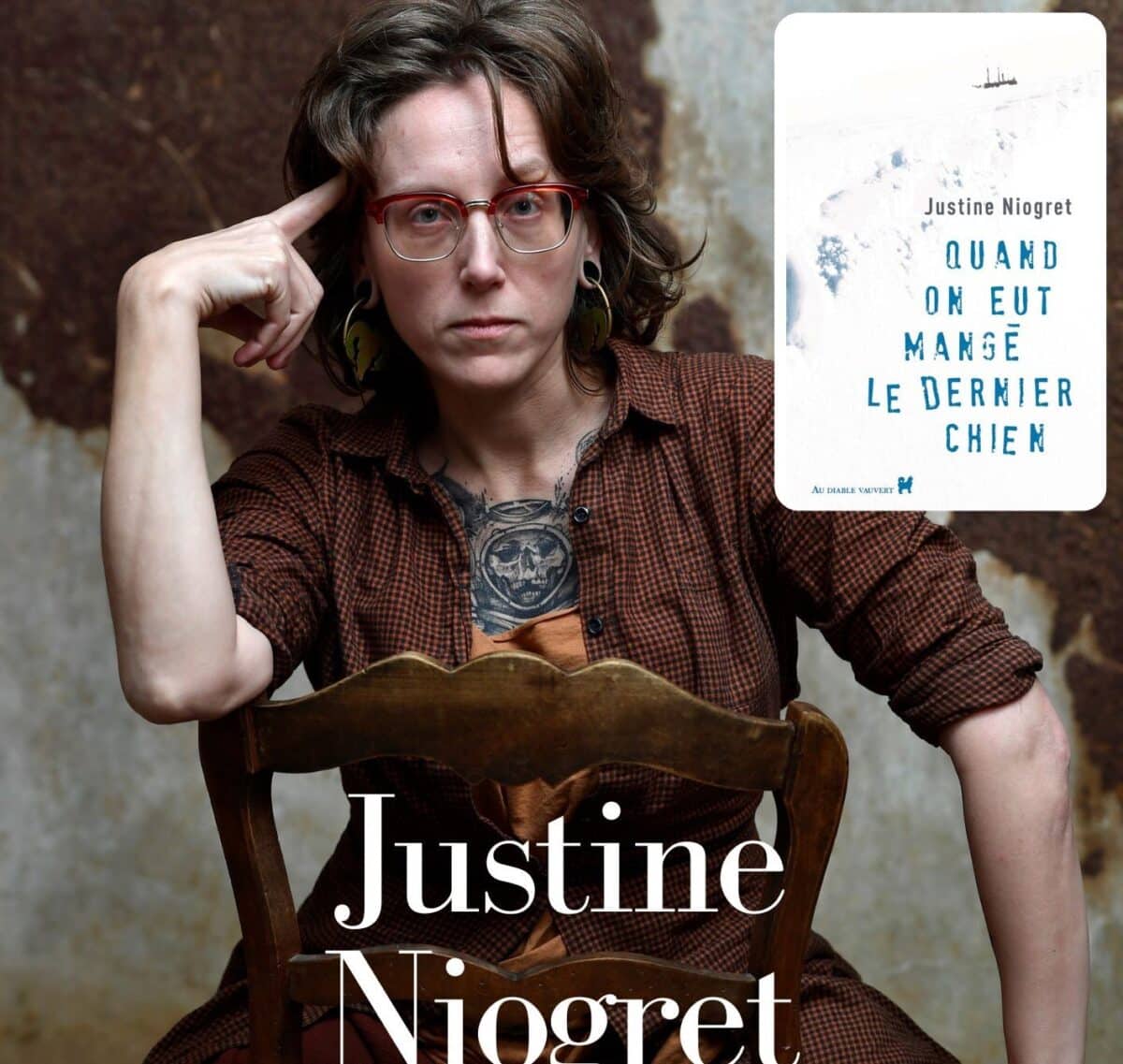 Justine Niogret est une auteure originaire de Bretagne qui a vécu à proximité de la forêt de Brocéliande. Elle s’est spécialisée dans le roman noir et les livres de science fiction et de fantasy. Elle a remporté de nombreux prix littéraires, dont le Grand prix de l’Imaginaire en 2010 pour son roman Chien du heaume. Elle travaille aussi dans le jeu de rôle, le jeu de plateau et le jeu vidéo. L’été dernier, elle a publié : Quand on eut mangé le dernier chien. Le livre relate l’histoire vraie de l’expédition en Antarctique menée par Douglas Mawson en 1911. Il souhaite avec deux de ses hommes cartographier une partie du continent encore inconnu. C’est un roman sur la survie en milieu austral. L’auteure réussit à dépeindre le froid, les grands espaces, ses trois personnages principaux avec leurs liens et leurs pensées