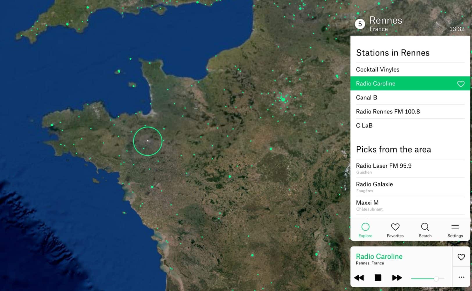 Si l’on zoome sur Rennes par exemple (comme ça par pur hasard), on remarque que Radio Garden a bel et bien le compas dans l’œil. Cocktail Vinyles, Radio Caroline, Canal B, Radio Rennes ou encore C Lab, sont autant de stations émises depuis la ville de Rennes que vous pouvez écouter en direct où que vous soyez dans le monde (avis à tous les Rennais et Rennaises expatriés loin de leur mère patrie !).