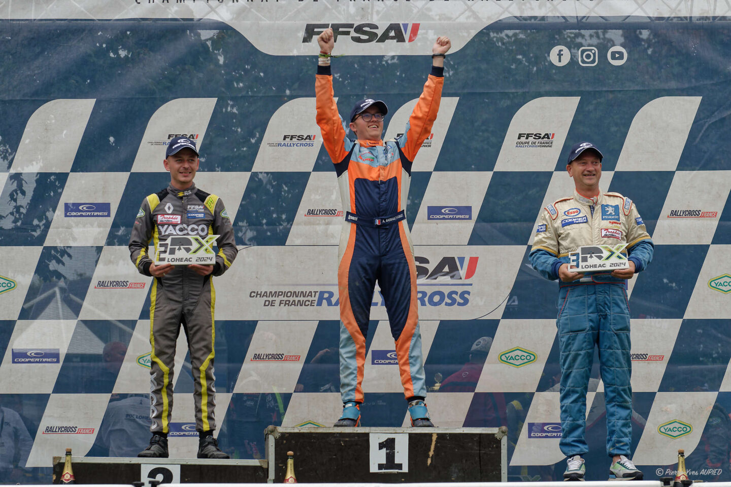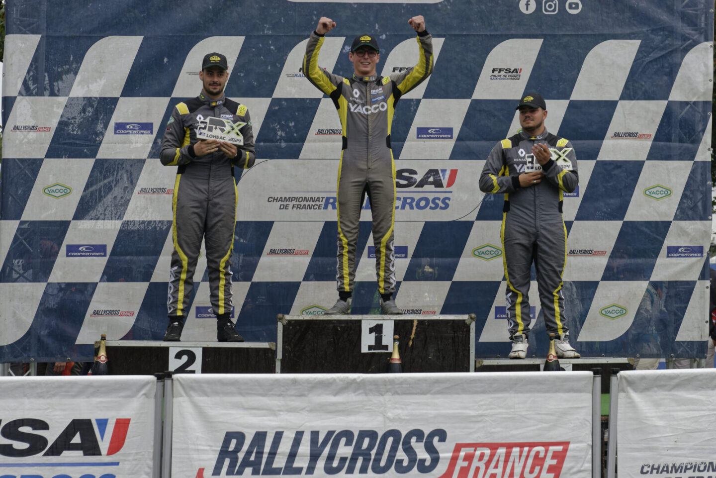 En catégorie JUNIOR : (14 pilotes) Les voitures sont des Clio Rally5 RX de 180 chevaux développées par les ingénieurs d’Alpine Racing. Le Championnat de France Junior permet aux jeunes pilotes âgés de 16 ans à 28 ans de faire leur classe dans le Rallycross