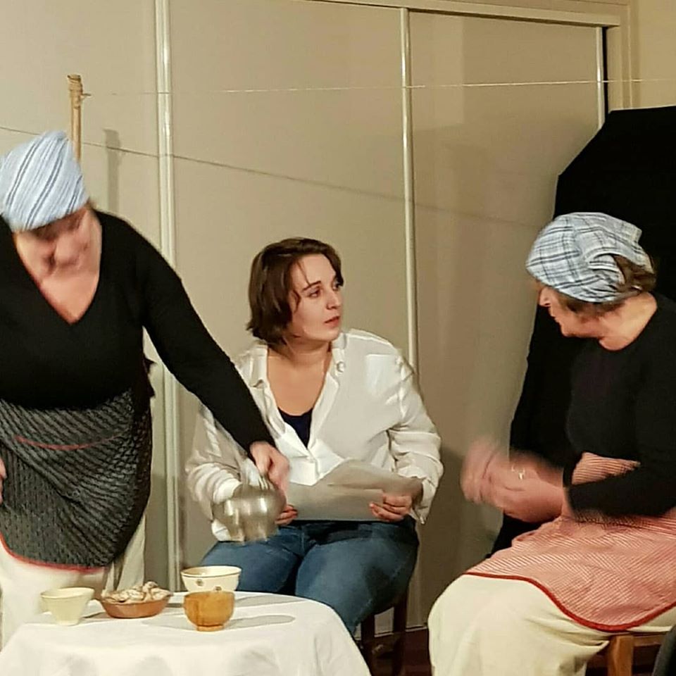 Louise Putov crée alors la compagnie Doroguina et recrute deux actrices pour jouer le rôle de sa grand-mère. Au départ, la metteuse en scène ne recherche qu’une seule actrice âgée d’une soixantaine d’années. Mais, lors de sa rencontre avec Isabelle Ereac et Marie-Pierre Vallès, elle ne peut les départager. « Je ne pouvais pas choisir. C’est super qu’elles soient deux à jouer le rôle de Sara Isaakovna. Elles montrent deux possibilités de représentation de ma grand-mère. » Pour sa pièce, Louise Putov s’est attachée à rester fidèle à l’échange entre son père et sa grand-mère. « J’ai seulement changé le fait que ma grand-mère ne s’adresse pas à son fils mais à moi directement. C’est moi qui pose les questions », explique la comédienne.
