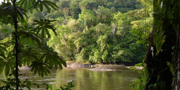 Terre sauvage ou temps sauvage, deux volets composent ce livre. Il y a d’abord l’immense et inextricable jungle qui va de Guyane au Brésil, puis le plus grand fleuve du monde, l’Amazone « la Grande Eau longue », et toutes ces rides fluviales zébrant ce pays, le Maroni qui sert de frontière au Surinam, l’Araguari, le Jari, le Paru, et l’Oyapock qui servit de cadre au précédent récit, Les Filles de l’Equatorial (2020). Là, trop souvent, la terre se dérobe et l’on marche dans « les forêts marécageuses et les savanes humides », piétinant dans la boue et dans l’incertitude.