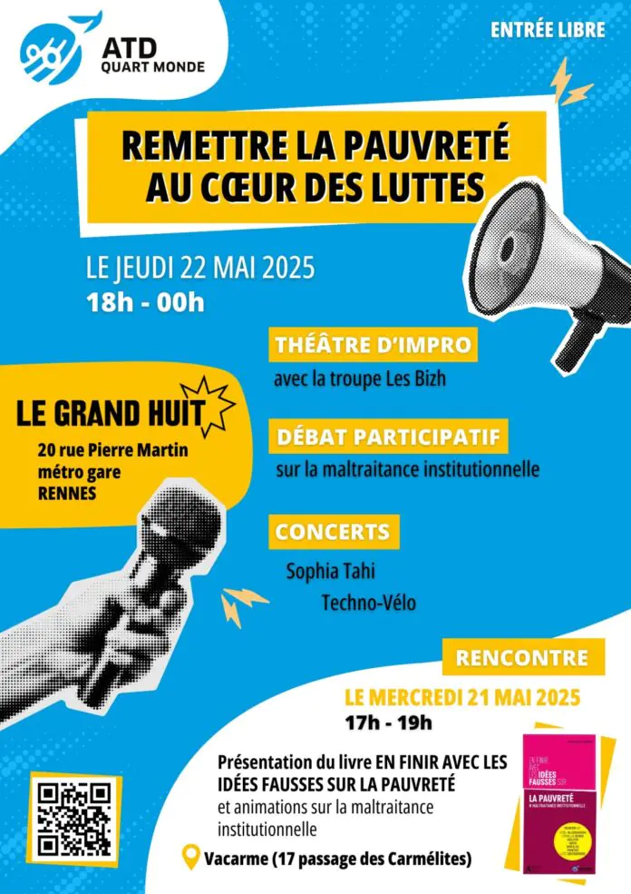 À l’occasion du nouvel événement national d’ATD Quart Monde, une grande soirée festive et engagée se tiendra le mercredi 22 mai au Grand 8 (Rennes).