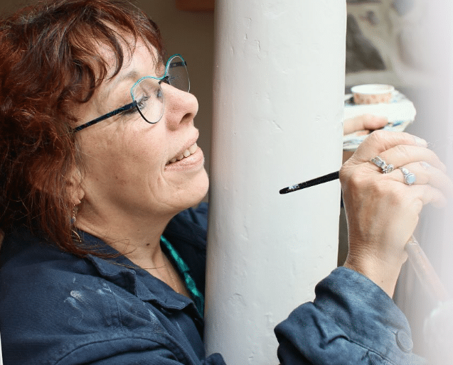 Formée aux Beaux-Arts puis graphiste pendant 15 ans, Florence plaque tout en 2010 et, avec un CAP peintre en revêtement, se reconvertit en peintre artisane décoratrice. Après des workshops réalisés en 2018 et 2019 avec des grands noms du lettring tels que Mike Meyer, Pierre Tardif et Morgane Côme, l’aventure de la peinture en lettres était lancée, son nom : Adelles. Aujourd’hui, La Fromagerie Vasselot, Bistrot Java, Goguette, Etiennette et Joséphine, Le Bateau Ivre, Magma, Caravan Palace, Pépin, Poème, La Crique, Marcello’s Deli, La Cavale… et bien d’autres commerces rennais ont déjà fait appel à Florence Bignon pour se faire ravaler la façade !