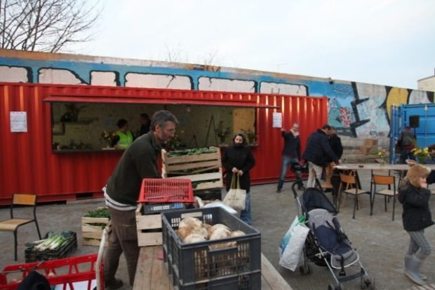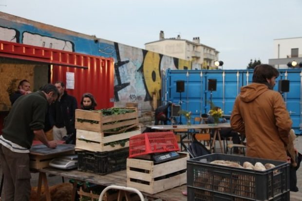 Au-delà du volet artistique, il y a une volonté d’apporter du rêve à ce nouveau quartier peu propice à en générer, et aussi de favoriser le lien social. La Zone Aux Containers se transforme en petite place de marché où les inscrits à l’AMAP du Pont-Neuf viennent récupérer poireaux, patates et épinards, œufs et poulets. Le (bon) pain quotidien est fourni par Carole, paysanne-boulangère installée avec Kevin Pêcheur à la Ferme du Launay à Bovel.