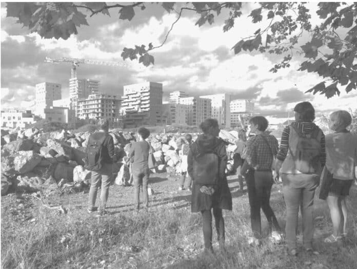 En guise d’inauguration, toute l’équipe d’Ars Nomadis et Territoires Publics accueillent tout au long de la journée le public au départ de la promenade et à son arrivée.