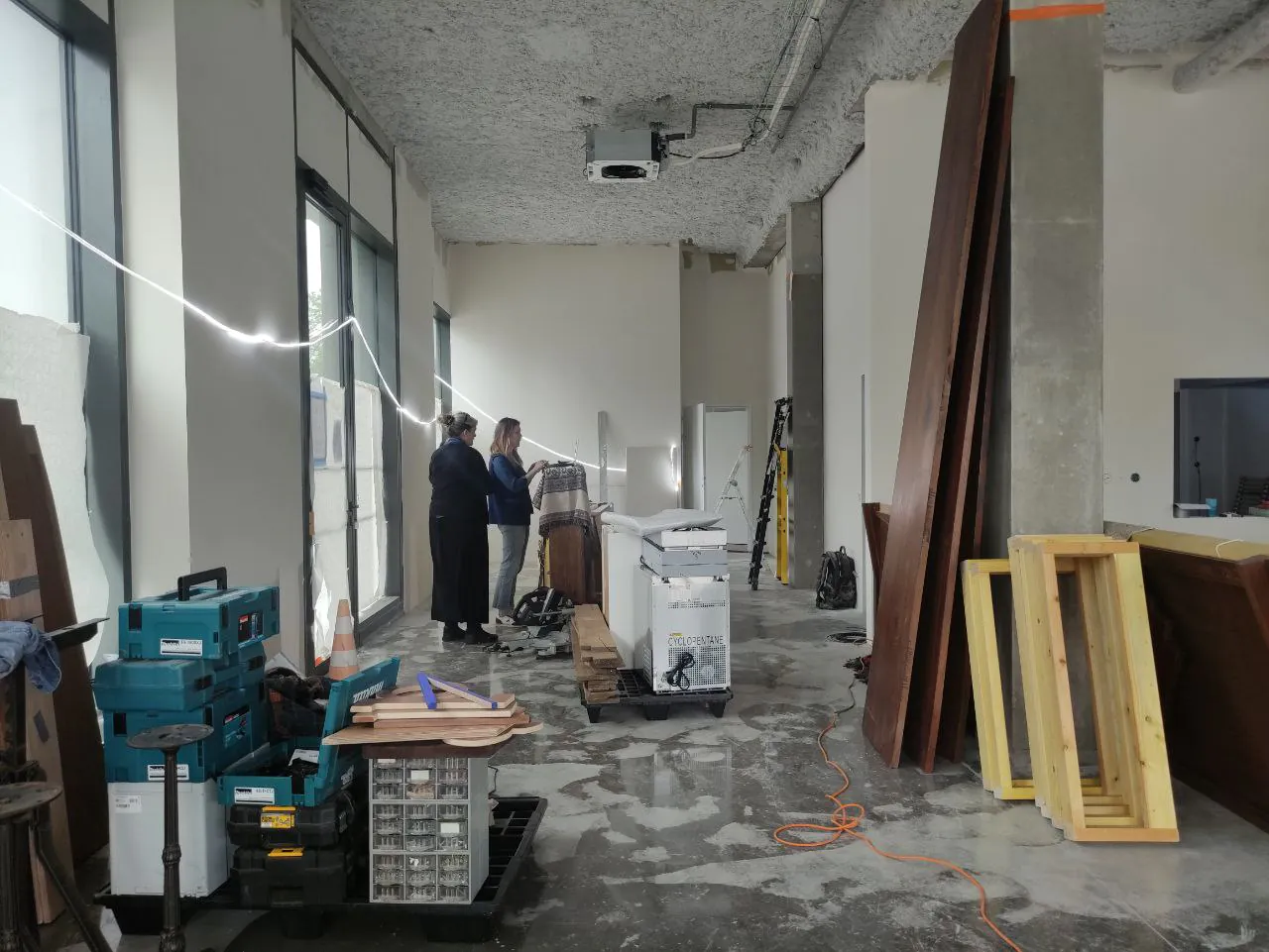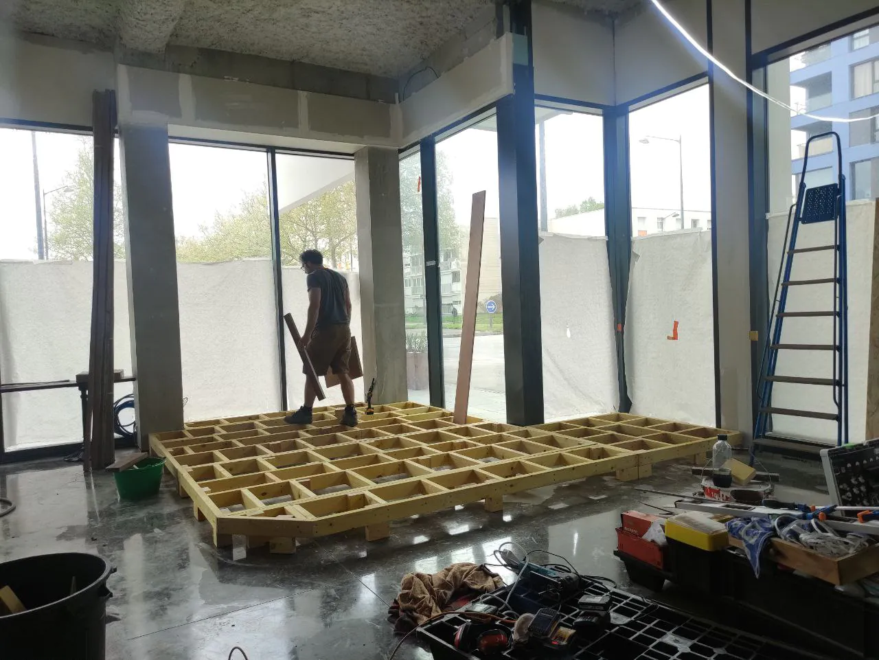 Accompagnée par Marion Laplane pour l’implantation de la décoration et du mobilier dans l’espace, l’équipe a choisi une décoration faite exclusivement à partir d’éléments de seconde main dans la même dynamique d’Alaska, « mais de manière encore plus poussée ». Toutes les constructions sont réalisées à partir de matériaux de réparation. « On a envie de donner le sentiment que ce lieu a toujours existé. » Des petites capsules ouvertes en bois serviront à installer des petits îlots pour manger ou travailler. L’installation de salons permettra de casser la hauteur sous plafond dans le but de créer un endroit chaleureux et vivant.