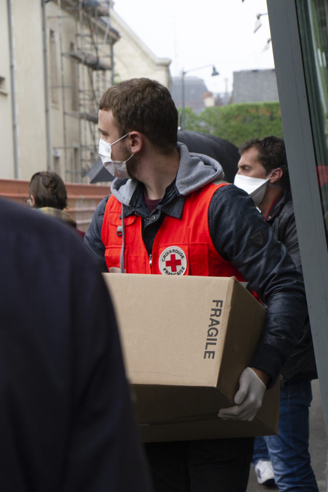 « Au début du confinement, il y a eu un moment de flottement, mais très vite de nombreuses entreprises, notamment Daunat, et de grands magasins sont venus vers nous pour faire des dons ». Aujourd’hui, la Croix Rouge distribue environ 20 000 repas par semaine ,soit l’équivalent de 2 repas par jour et par personne. Dans les paniers-repas, composés de sandwiches, de soupes, d’eau, de café, ainsi que de kits d’hygiène et de vêtements quand il y en a. Le café est bien souvent un prétexte : « Les gens à la rue ont peur qu’on les oublie. Bien souvent, ils apprécient notre passage, ça leur permet de discuter un peu. On est comme une bouée de sauvetage pour eux. Ils ont besoin de ce contact humain, il n’y a plus personne dans les rues. Ils savent où nous trouver », explique un bénévole de la Croix Rouge.