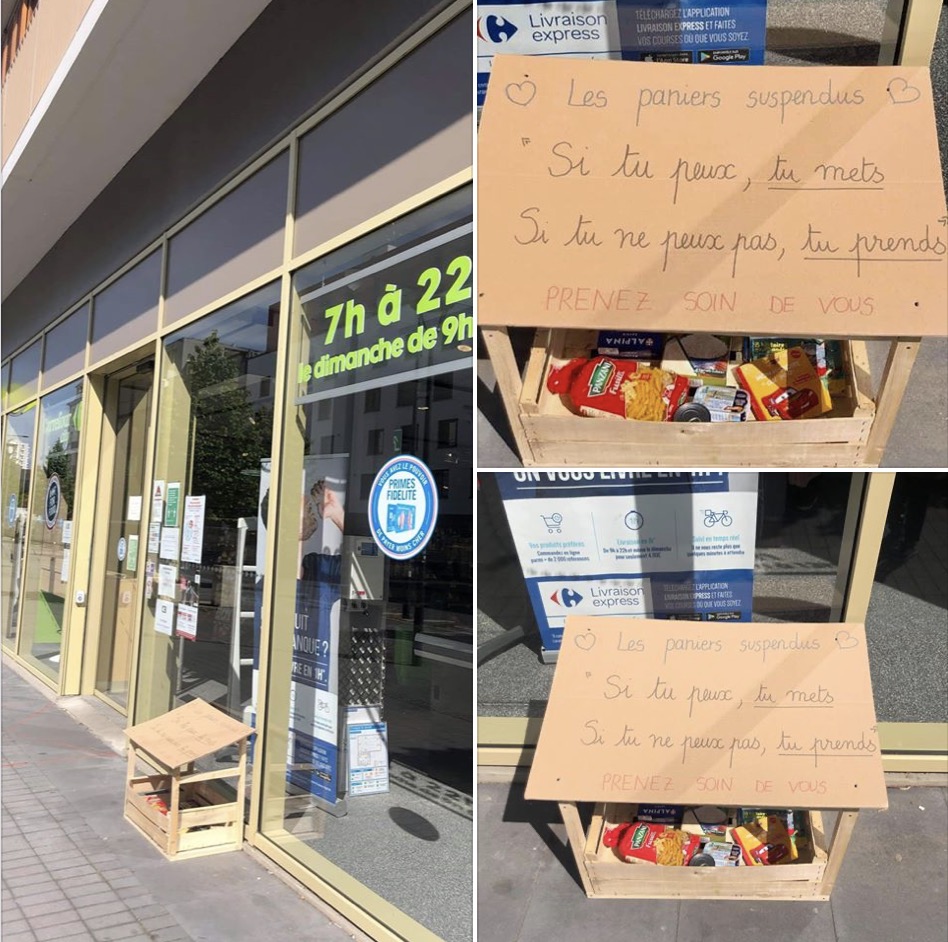 Et la magie s’opérera …. les passants, vos voisins remplissent ou complètent votre panier SUSPENDU et … les personnes se servent 🙏🏼🧺