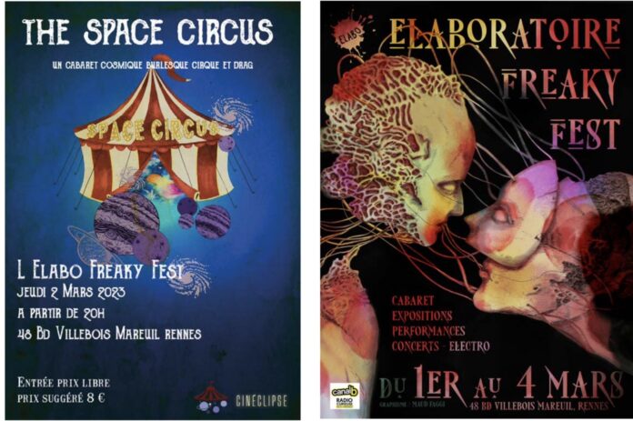 L’Elabo Freaky Fest entend célèbrer l’art et la musique sous toutes leurs formes. Du 1er au 4 mars 2023, l’Elaboratoire accueille une sélection d’artistes de la scène rennaise. La programmation inclut des expositions, des concerts, des performances et d’autres surprises afin de partager un peu de la magie de ce lieu qui vient au bout de plusieurs années de frictions avec la municipalité de Rennes de nouer un partenariat. L’heure est donc à l’ouverture et l’accueil du public.