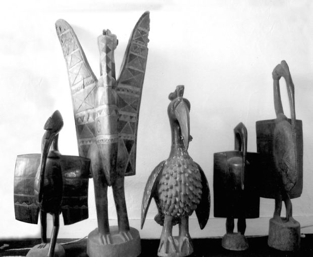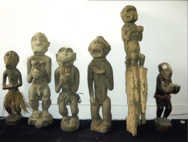 Trop brillants ? Non. Trobriand ! Point n’est besoin d’être à fond sur la culture de ce peuple premier de Nouvelle-Guinée pour apprécier leur art. On pourra se procurer deux éléments de proue de bateau en bois peint (estimés à 50 €). Plus importants et provenant de leurs voisins Sepik, on pourra se laisser tenter par un avant de pirogue (500/600 €) ou par un superbe poteau de case d’ancêtre Maprik d’une hauteur de 168 cm (600/900 €}.