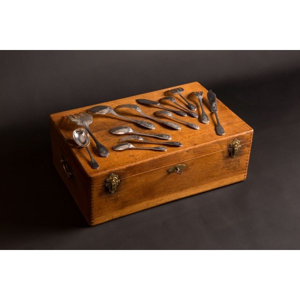 Ce mot qui vient du latin auri et faber désigne l’artisanat de l’or, vénéré depuis l’Antiquité. Les Mérovingiens en ont fait le symbole de leur pouvoir. Il n’est donc pas surprenant que son saint-patron en soit contemporain: il s’agit de saint Éloi (oui, celui qui a dit au roi Dagobert ce que vous savez). Les pièces de la vente du 7 décembre ne remontent pas au Moyen-Age, mais elles comptent de superbes exemplaires du XVIIIe au XXe siècles. La consultante Sophie Vergne chérit particulièrement la période Art Déco sur le plan esthétique. Pureté des lignes donc, pour une cafetière en argent (estimée entre 300 et 400 €), pour un service à thé de la maison Tétard frères (1000/1200 €) et pour une petite cuiller saupoudreuse, mignonne et pas chère (50/60 €). Plus ancien et un brin aristocratique, car il affiche une couronne comtale, un service à thé et café en argent a beaucoup d’allure avec ses motifs de branches de laurier et ses feuilles d’acanthe. Remontons encore le temps avec un plateau en argent particulièrement raffiné, qui porta la signature d’Aucoc, illustre dynastie d’orfèvres du XIXe à Paris (500/600 €). Une rare saucière couverte d’argent sur son dormant, avec un intérieur en cristal bleu, présente un décor de toute beauté avec des oiseaux, deux têtes de bélier ; elle porte la marque Odiot, autre prestigieuse dynastie de maîtres-orfèvres parisiens qui comptait le tsar parmi sa clientèle (100/1500 €). Vous voulez donner du poids à vos dégustations de vin ? Optez pour les 98 gr. d’argent d’un tastevin de 1838 (100/150 €). Dans la même gamme de prix, le moutardier en argent doré avec intérieur en verre de couleur verte donnera plus de chic à votre table que l’habituel verre à moutarde ! Si vous n’avez pas d’ensemble complet de couverts en argent massif, l’occasion se présente d’en acquérir un de 168 pièces, signé Olier et Caron (3500/4000 €). Sophie Vergne l’assure : il faut s’en servir tous les jours pour lui éviter de ternir. L’argent massif passe sans problème au lave-vaisselle, à condition d’avoir des plateaux compartimentés – mais il est contre-indiqué pour le métal argenté.