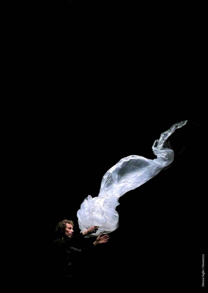 C’est en 2007, lorsqu’il quitte le CNAC qu’Étienne s’attaque à l’écriture de son premier spectacle Le Soir des Monstres. Fantôme ne sera pas sa première venue sur la place rennaise. En 2011 il est présent au festival des Tombées de la Nuit en coproduction pour l’installation Le Silence du monde, précisément la suite du Soir des Monstres. Fantôme, créé en octobre 2015, à Paris lors des Nuits Blanches affine et précise le travail et l’univers de cet illusionniste hors pair. Inspiré par l’univers énigmatique de Tim Burton, Etienne Saglio (que l’on surnomme le Petit Prince de l’effet hallucinatoire) poursuit sa quête fantasmagorique, mais en se confrontant cette fois aux espaces publics. Ce n’est pas en salle, mais dans des parcs, des halles, sur des places qu’il va donner vie et mouvement à son Fantôme, créature diaphane, changeante et virevoltante. Sans rien signifier de sa réalité, de son essence cette figure symbolique mouvante-émouvante va appeler le spectateur à la suivre, à contempler le mystère de son ballet aérien intriguant et follement poétique. Cette présence spectrale animée par la magie nécromancienne baroque d’Etienne Saglio permettra alors un regard tout autre sur la ville et sa vie, comme si la créature était l’émanation du lieu, son fantôme, une trace évanescente de son passé contemplant son possible avenir en mouvement.