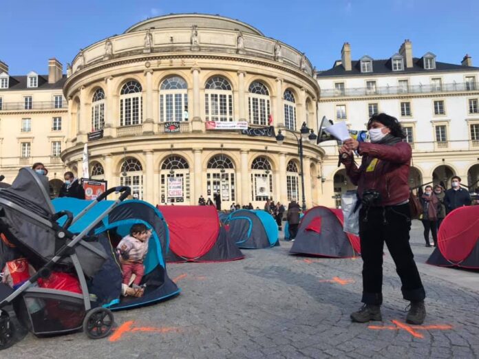 Chaque année, même combat. Plus les températures baissent au thermomètre, plus ça s’échauffe du côté des organisations de soutien aux personnes exilées, précaires et sans abri. Malgré une politique volontaire de la municipalité en la matière, malgré la loi française censée garantir un logement décent pour tous, malgré le droit au logement opposable qui permet même, théoriquement, de saisir les autorités quand ce droit n’est pas appliqué, tous les ans un certain nombre de personnes semblent oubliées par le système. Et laissées à la charge des associations, comme celles-ci le dénoncent régulièrement au sein de l’inter-organisation de soutien aux personnes exilées, qui se réunissait samedi 15 janvier 2022 pour manifester sur l’esplanade Charles de Gaulle à Rennes.