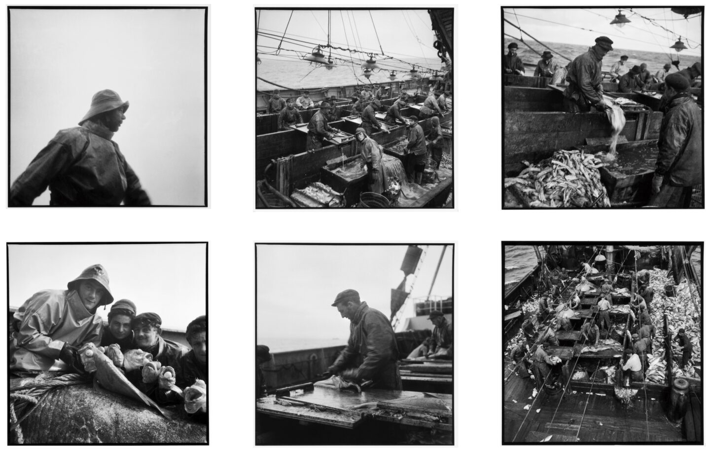 Au centre de l’exposition se tient la figure magistrale d’Anita Conti. Journaliste, photographe, écrivaine, océanographe, relieuse d’art, elle aura consacré sa vie à comprendre la mer et celles et ceux qui en vivent. Dès la fin des années 1930, seule femme à bord de chalutiers, de navires océanographiques ou militaires, elle s’embarque pour observer, écrire et photographier. Son œuvre documente les gestes du travail maritime, les paysages de haute mer, les visages des équipages, mais elle porte aussi une intuition visionnaire : Anita Conti fut parmi les premières à alerter sur la pêche à outrance et sur la surexploitation des océans.