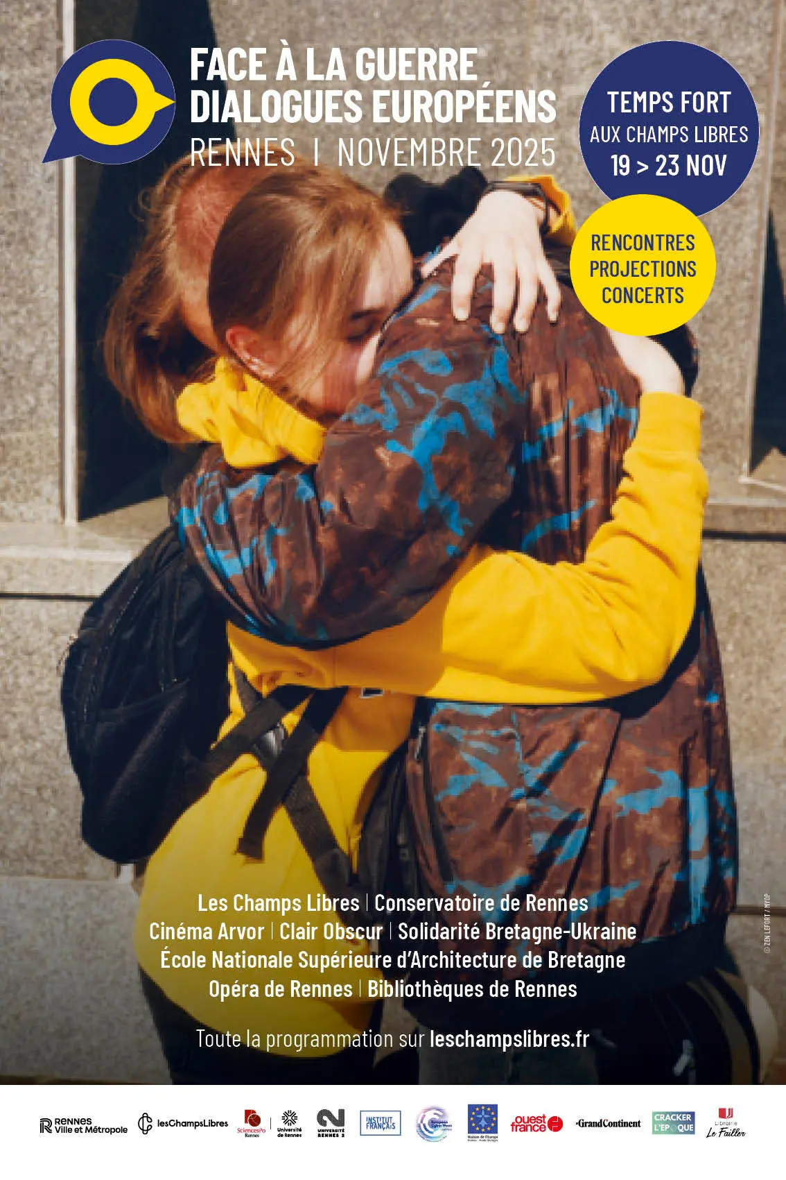 Les Dialogues européens ont été initiés en 2023 par l’Institut français. L’étape française, en 2024 à Rennes, avait permis de rencontrer celles et ceux qui, à l’autre bout de l’Europe, se battent et regardent notre avenir commun d »un autre point de vue. Le flambeau est repris cette année par Les Champs Libres et de nombreux acteurs rennais. « Dans une période où nous sommes directement bousculés par le contexte géopolitique, cette nouvelle édition des Dialogues européens témoigne de la richesse des liens tissés entre l’Est et l’Ouest de l’Europe comme de nos préoccupations communes : les avenirs de la démocratie, les nouvelles formes de menaces et de résistance, le réarmement de nos pays, les conséquences de la guerre et la reconstruction.Les Dialogues européens, c’est aussi apprivoiser notre diversité, nos mémoires conflictuelles mais aussi partagées ; c’est enfin se rappeler nos raisons d’être ensemble et y trouver le courage d’agir », Corine Poulain, Directrice Générale des Champs Libres.