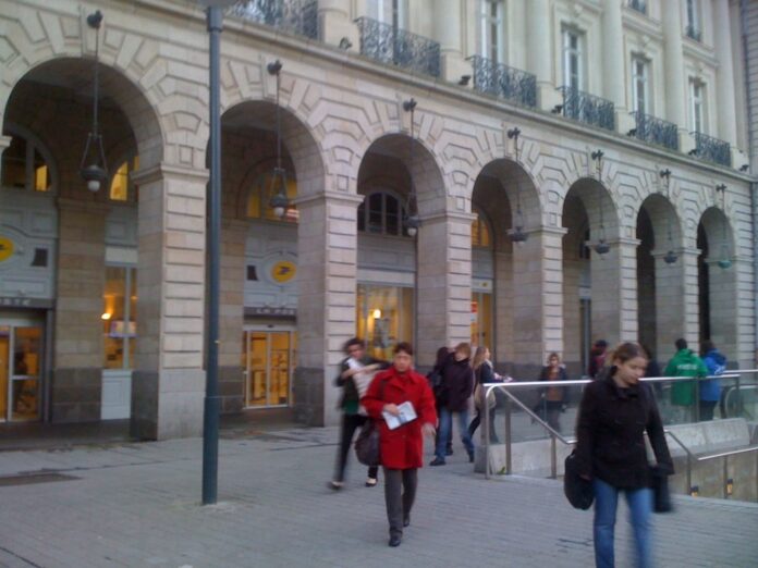 La Poste et La Mairie veulent fermer les arcades de l’ancien Palais du Commerce à l’aide de panneaux de verre ou de grilles. Exit les drogués et leurs revendeurs. Dehors la « racaille ». Mais cette mesure pour le moins radicale portera-t-elle ses fruits ? Ne déplacera-t-elle pas le problème au lieu de le résoudre ? À Rennes, on a toujours préféré fermer les passages (voir notre article) et non régler les problèmes à leurs sources.