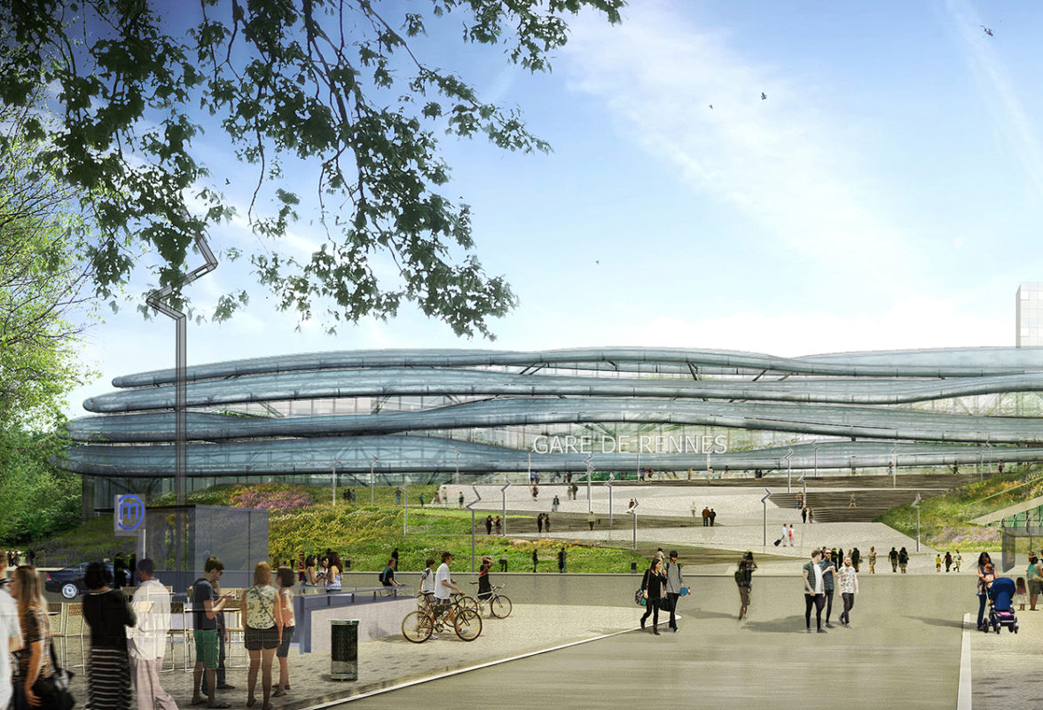 En 2017 la ligne LGV s’installe en Bretagne : Paris n’est maintenant plus qu’à 1h30 de la capitale bretonne. Un véritable progrès pour l’anniversaire des 160 ans de la gare. La nouvelle architecture (sol en bambou et toit en éthylène tétrafluoroéthylène – ETFE – à la manière d’un nuage) fait place à de nombreuses améliorations : la passerelle Anita Conti ouvrant un meilleur accès entre le nord et le sud de la ville – ouvert 24h/24h, la deuxième ligne de métro, un réaménagement de la gare routière, l’ouverture de nouveaux commerces et l’ajout d’une nouvelle voie. À ce jour, la gare de Rennes est toujours en travaux, mais de nombreuses infrastructures sont sorties de terre pour faire fleurir des bureaux d’acier et de verre et faire de ce quartier Eurorennes, un pôle de compétitivité à l’échelle européenne. Preuve que les différents plans d’urbanisation changent autant le quotidien des Rennais que le paysage de la ville.