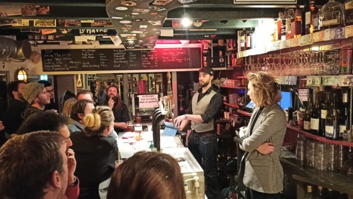Nous sommes le 8 février 2023 et le rez-de-chaussée du bar La Cour, rue de Penhoët à Rennes, est bondé comme un jour de match. Point d’écran géant pourtant, ce soir, c’est Thow qui fait le show. C’est parti pour plusieurs heures de blindtest à travers sa bibliothèque musicale. Tenez-vous prêts, il faudra être rapide pour remporter la partie !