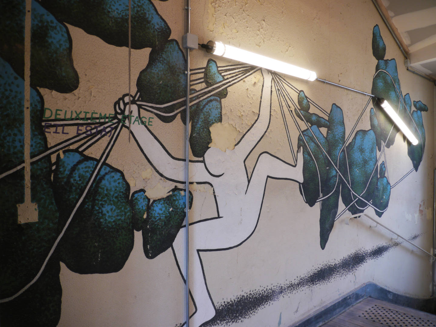 La signalétique entièrement bilingue, « simple et efficace », nous guide dans les grands couloirs alors que les graffs de la cage d’escaliers conservent la trace du passé de l’Hôtel Pasteur.