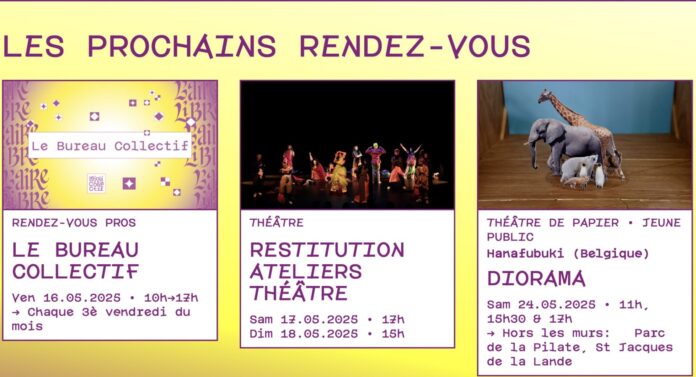 À Saint-Jacques-de-la-Lande, le Théâtre l’Aire Libre entre en effervescence pour clore sa saison 2024-2025 avec un mois de mai placé sous le signe de la transmission, de la jeunesse, et de l’exploration des formes scéniques. Pratiques amateurs, spectacles familiaux, performances engagées et expérimentations artistiques se succèdent dans une atmosphère festive, entre salle et plein air.