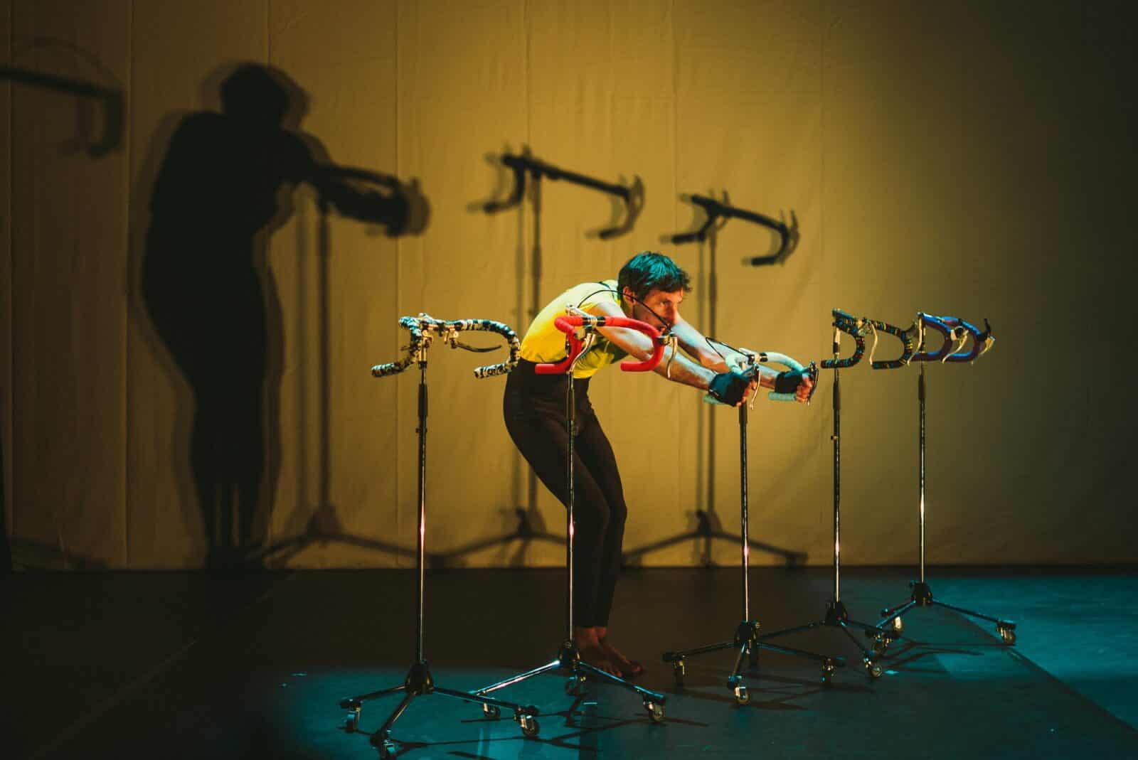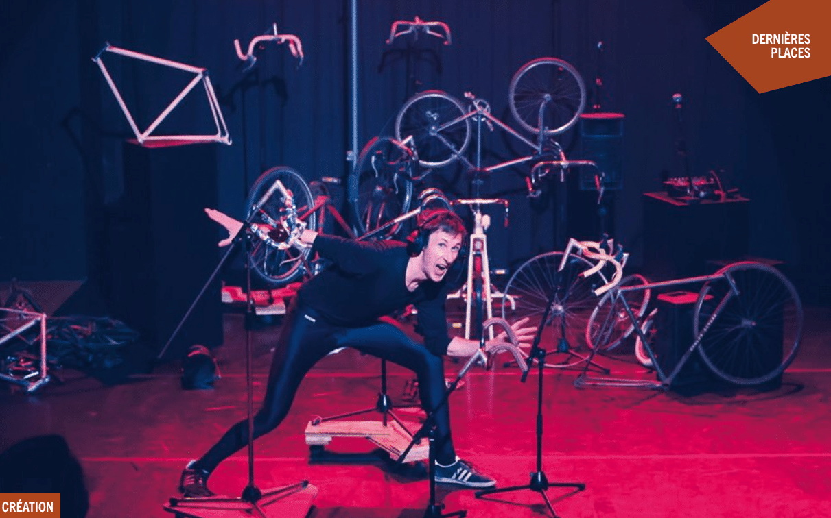 L’utilisation d’objets, en particulier de pièces de vélo recyclées, joue un rôle central dans la scénographie. Ces objets matérialisent les transitions et les personnages, tout en renforçant l’aspect visuel et sonore du spectacle. Julien Galardon ajoute : « Tout est fait à partir de pièces de vélo dans la scénographie, même si elle est assez épurée ».