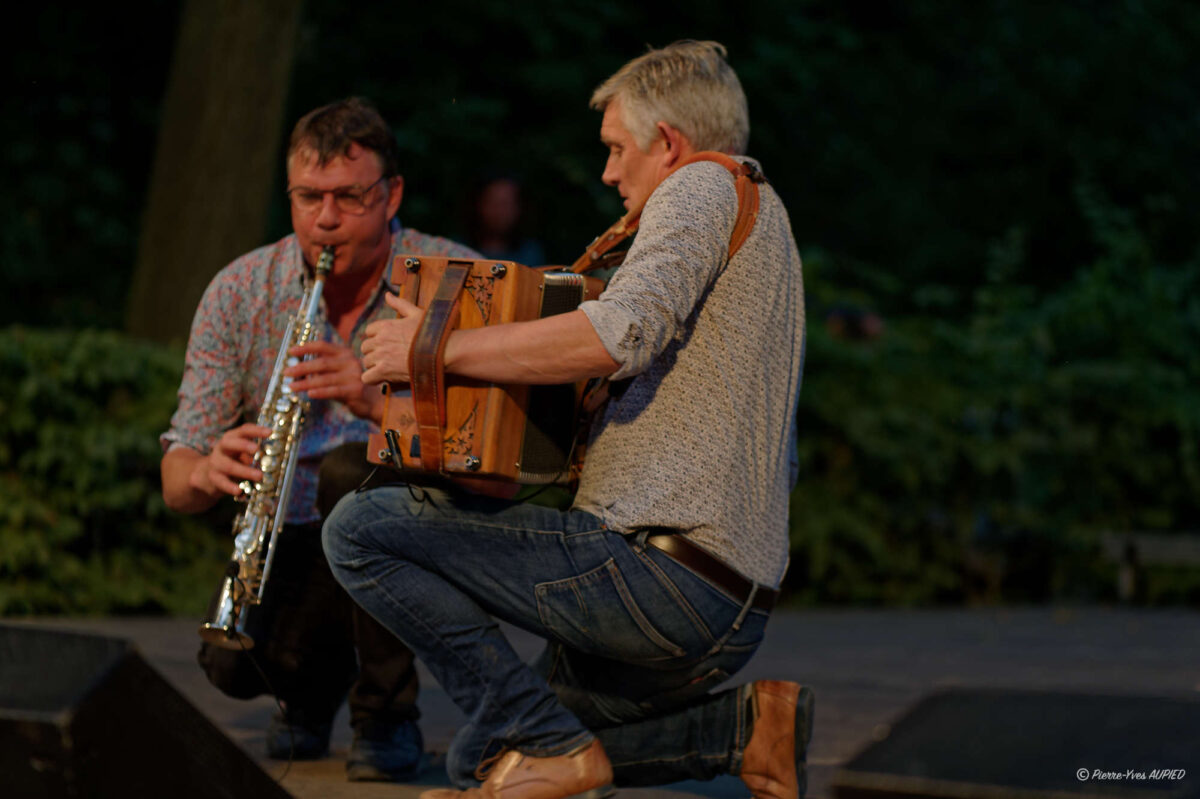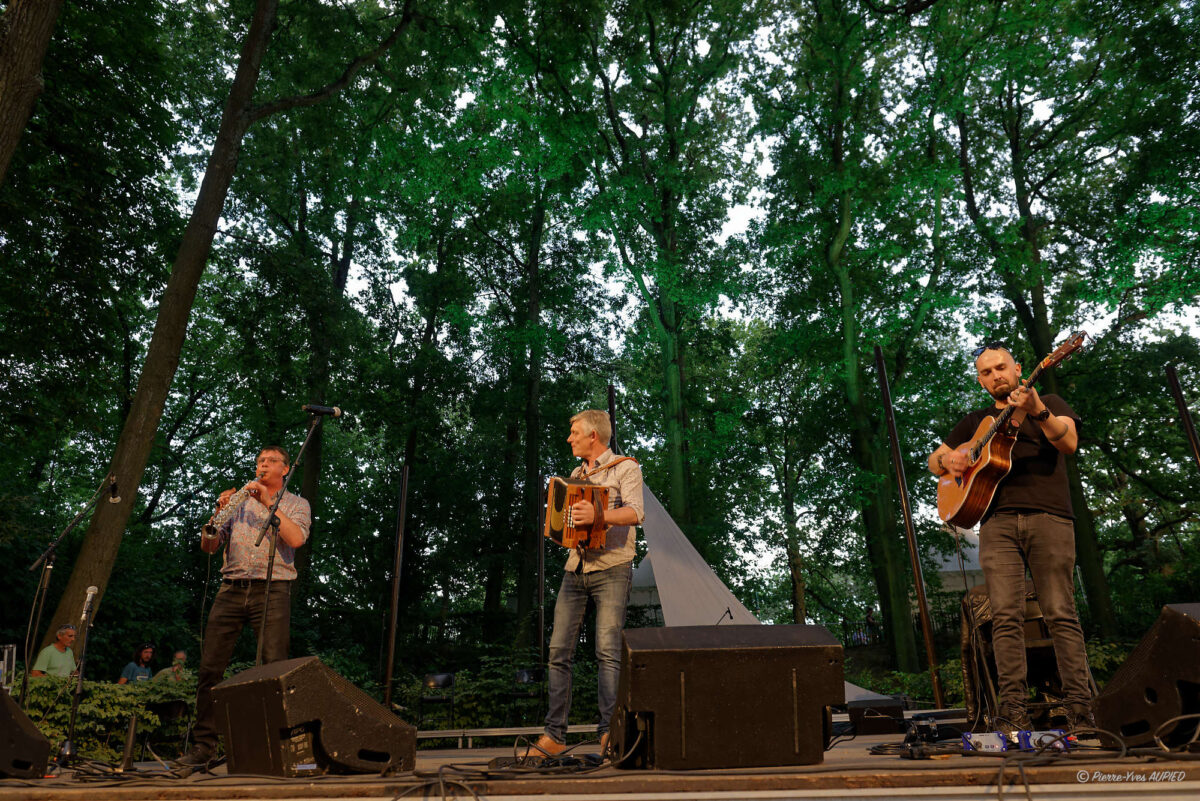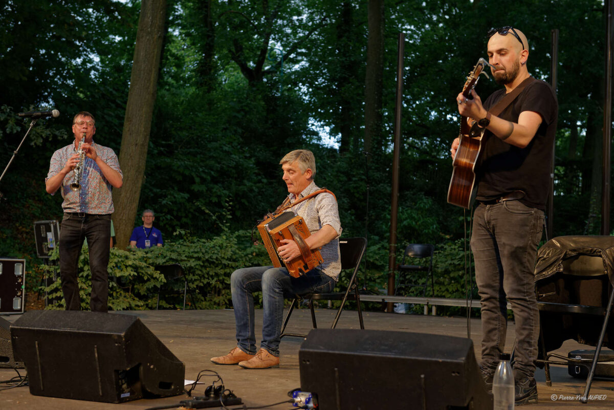 Les seconds à monter sur scène fut le groupe Initium avec Bruno Le Tron à l’accordéon diatonique, Franck Fagon à la clarinette, saxophone soprano et Pablo Molard à la guitare. Des compositions énergiques, des mélodies profondément poétiques jalonnées par les lieux qui ont inspirés les compositions de Bruno Le Tron (l’île de Bréhat, le mont de l’Obiou, les Cévennes…) Les spectateurs n’ont pas cessé de danser sur leurs musiques très entrainantes.