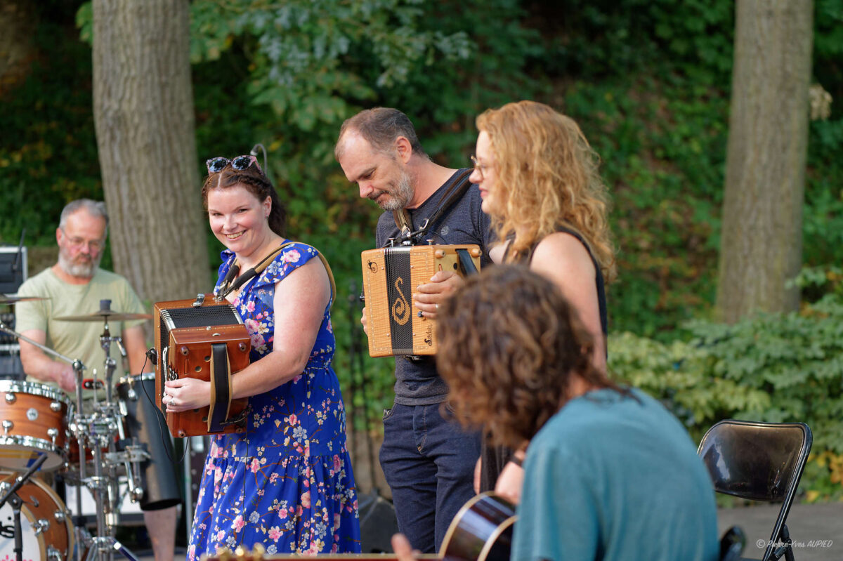 Le groupe Trad’Awen a fait danser au son de l’accordéon diatonique et des chants traditionnels bretons les derniers spectateurs restés jusqu’au bout de la nuit pour clôturer cette dernière édition 2024 des Mercredis du Thabor.