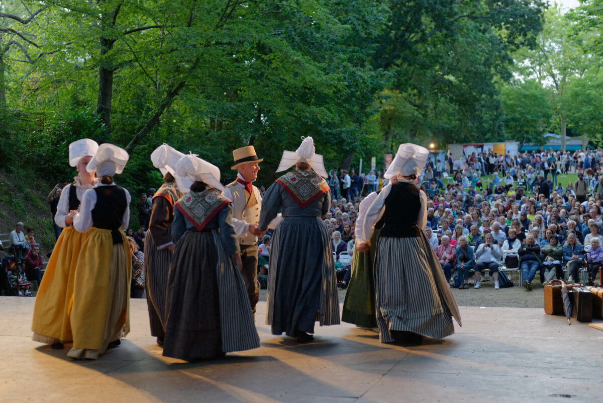 Les Mercredis du Thabor sont des soirées d’animations organisées tous les mercredis du mois de juillet par Skeudenn Bro Roazhon dans le théâtre de verdure du magnifique et très célèbre parc de Rennes. Le public a répondu présent à cette seconde soirée pendant laquelle les cercles celtiques se sont succédés sur la scène pour présenter un spectacle de danses et musiques bretonnes.