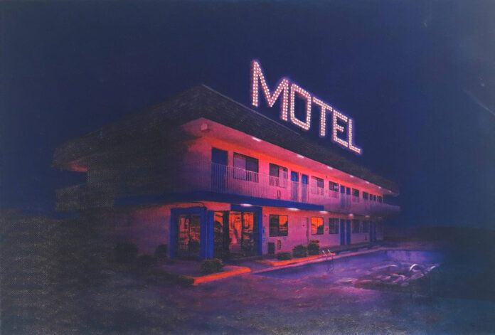 Après une première exposition en 2018 à L’Aparté, la série Motels signée Julie Giraud prend cette fois résidence, du 3 décembre 2021 au 29 janvier 2022, au sein de la Bibliothèque de l’Institut franco-américain de Rennes. Cette exposition invite au voyage « à travers une mise en scène de sérigraphies et de peintures ».
