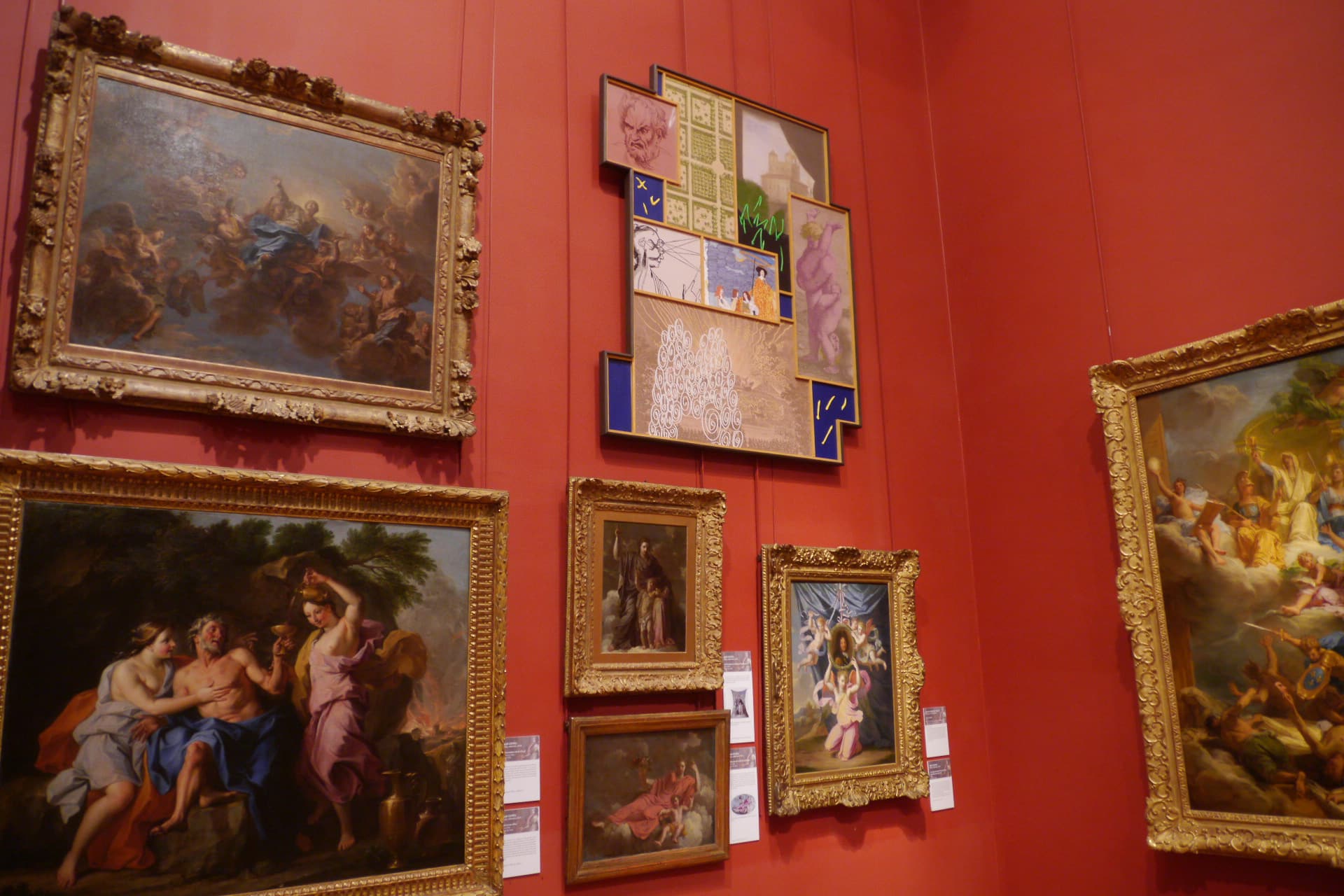 Dès le début de la visite, un dialogue se crée entre les œuvres du passé et les formes hétéroclites contemporaines de Vincent-Michaël Vallet. Dans leur observation commune, le conservateur et l’artiste ont extrait l’essence plastique de chaque œuvre. En découlent des propositions plastiques de l’artiste d’où s’échappe une sensibilité particulière pour les outils numériques. Pour enrichir encore le dialogue, des extraits de textes relatifs à la peinture ont été sélectionnés par Élisabeth Lavezzi. Ils apportent le regard d’artistes, critiques d’art et écrivains du XVIIe sur ces œuvres qui étaient alors contemporaines.