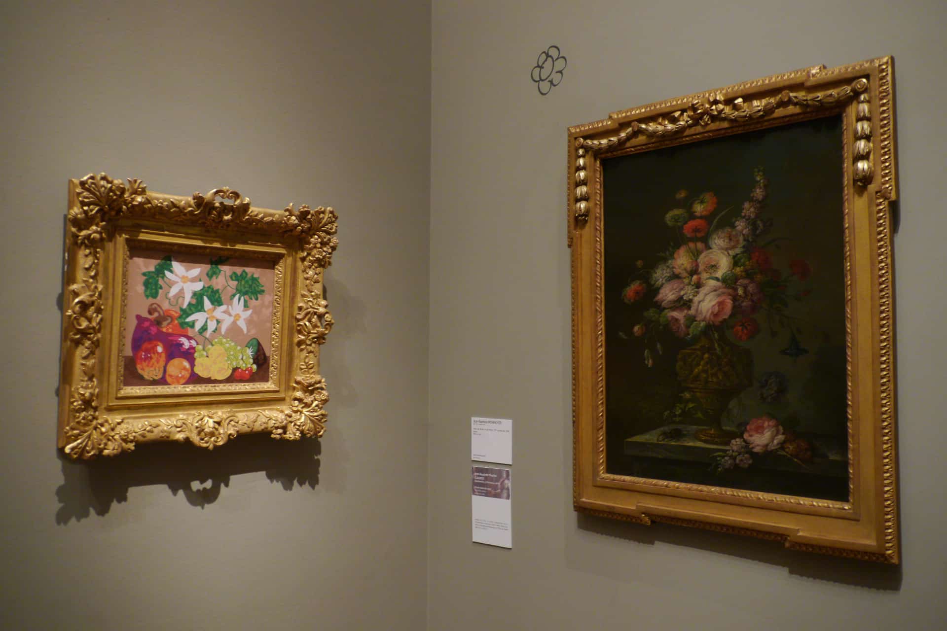 En regard de deux chefs d’œuvres, Pêches et raisins de Jean-Siméon Chardin (1759) et Coupe de fruits de Lubin Bauguin (vers 1630), l’artiste donne naissance à D’après nature, un dessin à la tablette graphique. Exposé dans un cadre issu des réserves du musée, le tableau trouve sa place au milieu des collections permanentes de l’espace des natures mortes. L’artiste intervient également dans la scénographie même du lieu avec Stickers. Ces reproductions naïves des éléments de la nature, semblables à des graffitis d’enfants, s’installent sur les murs et questionnent la hiérarchie des genres en remettant en perspective l’histoire de l’art. La nature morte étant autrefois considérée comme un sujet « mineur » concurrencé par la peinture historique et le portrait.