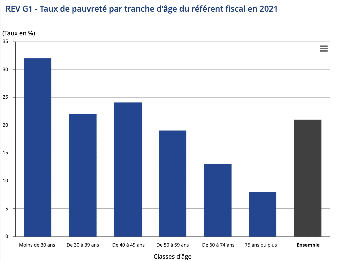- 32 % des moins de 30 ans vivent sous le seuil de pauvreté,