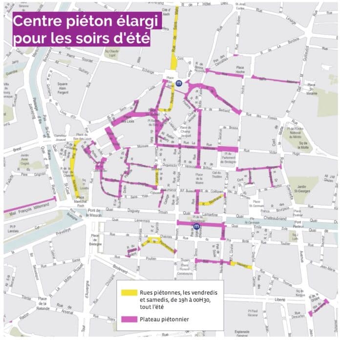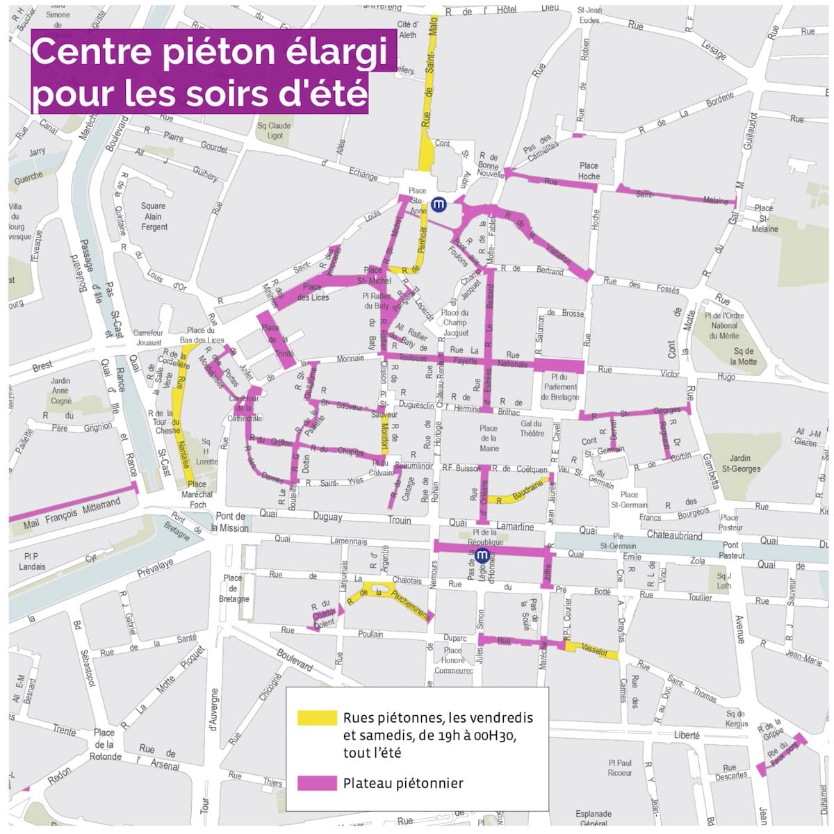 La Ville de Rennes met en place un dispositif exceptionnel et temporaire pour permettre le déploiement des terrasses sur la voie publique afin de soutenir la reprise d’activité et pour faciliter le respect des distances sanitaires. Du vendredi 5 juin jusqu’au 30 août 2020, certaines rues du centre-ville de Rennes seront piétonnisées les vendredis et samedis soirs de 19 h à 00 h 30. Attention, toute circulation motorisée et cycliste est interdite !