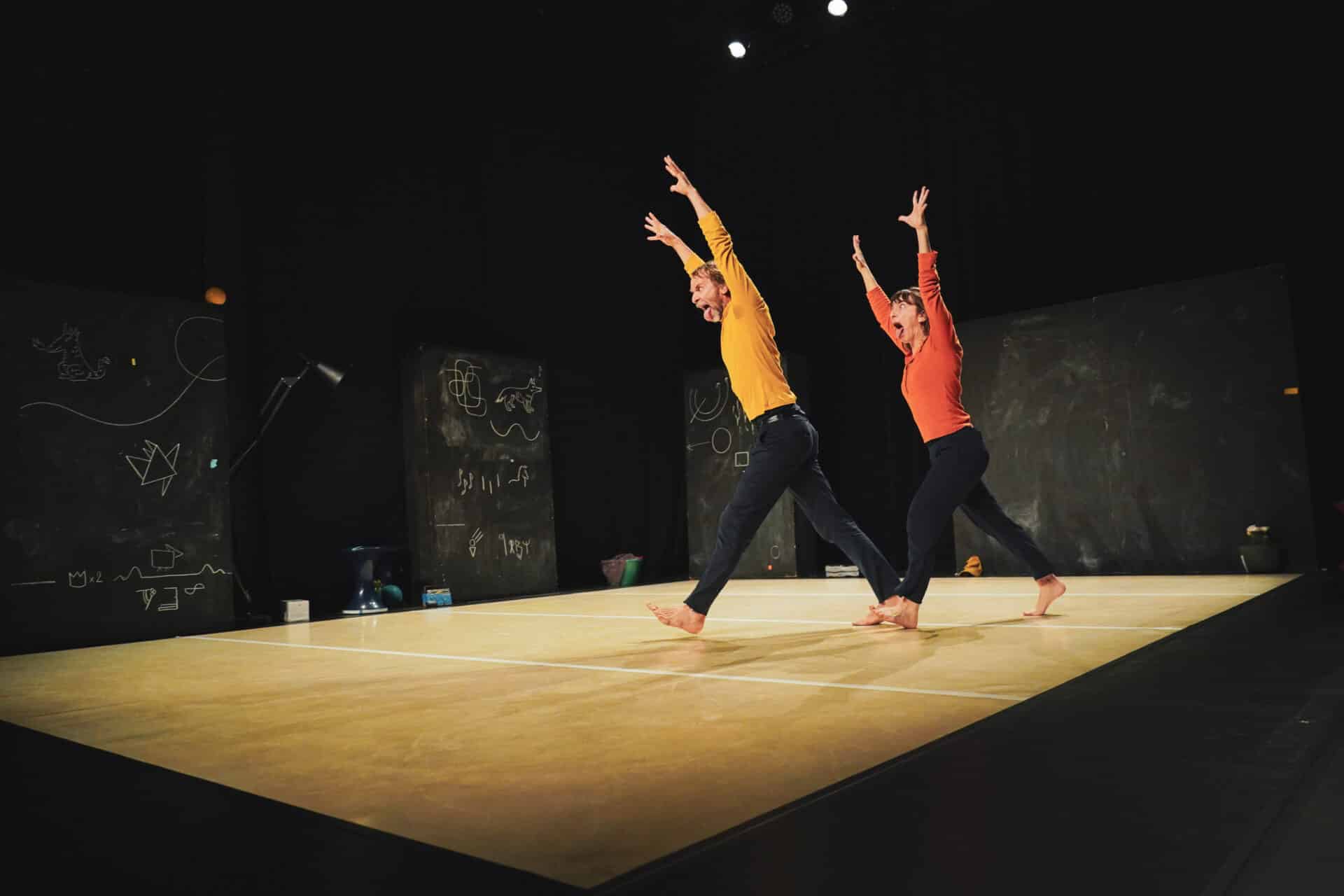 Les enfants prennent alors la craie, dessinent leur propre grotte sur un tapis. « Une fois qu’on a fabriqué cette caverne, alors on peut imaginer un monde qui danse. » C’est cette construction commune entre abstraction et concret qui forme le cœur du spectacle. Rien n’existe sans l’autre : la danse transforme le dessin, le dessin transforme la danse.