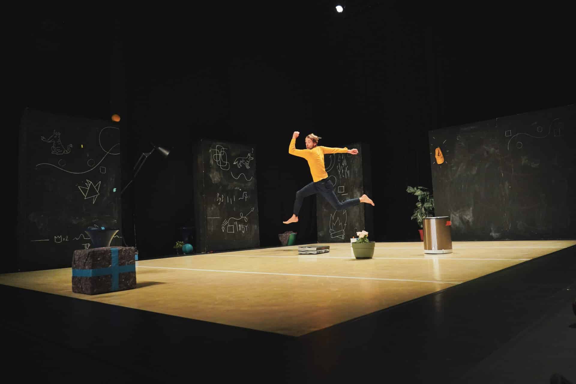 Parmi les dernières créations en date, le spectacle Pourquoi un arbre est une poule ? incarne pleinement la philosophie de MA compagnie. À travers une scénographie simple comme un mur, des craies, quelques objets du quotidien, il ouvre une grande question : comment le monde s’est-il construit ? Et surtout, comment le réinventer ?