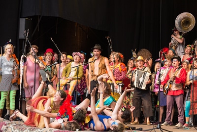 Tout sauf une fanfare, un groupe d’irrésistibles musiciens et de danseurs hauts en couleurs et en clowneries. Des troubadours de Gand qui vous emportent dans le tourbillon de la fête sur une musique et une ambiance qui vous font oublier tous vos soucis !