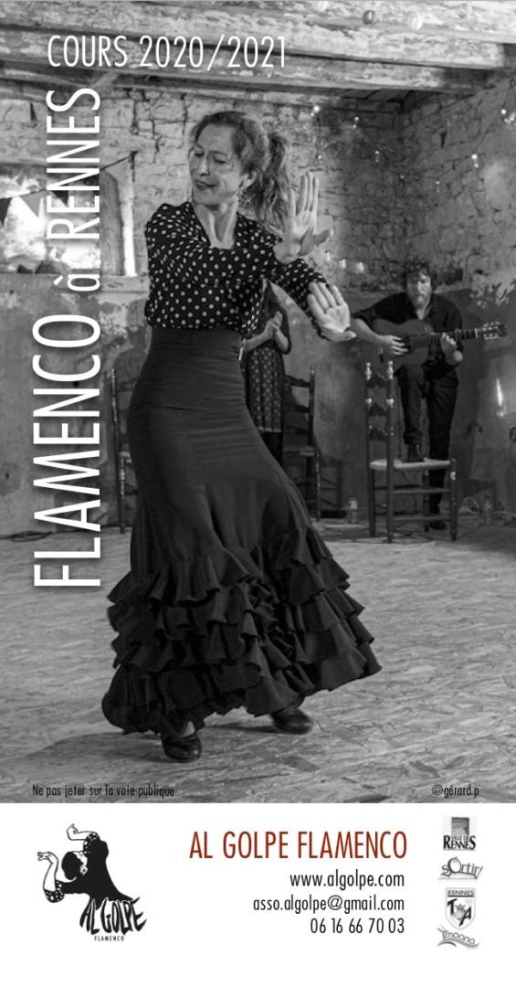 Al Golpe Flamenco vous propose des cours hebdomadaires de Flamenco à Rennes, le midi et le soir, quartier centre (la TA) et Poterie (Studio Moana). N’hésitez pas à nous contacter et venir faire un cours d’essai.