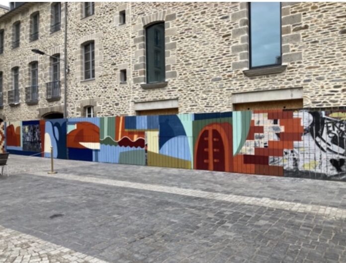 Vendredi 6 mai 13h sonne la fin du chantier de l’œuvre de street art conçue par Bims et Brez, artistes rennais membres de l’association Teenage Kicks qui porte à Rennes la biennale d’art urbain. L’œuvre d’art urbain est créée sur les palissades du chantier du futur hôtel Mama Shelter. Le propriétaire de l’hôtel, Suitcase Hospitality, met à disposition les palissades du chantier imposant de la place.