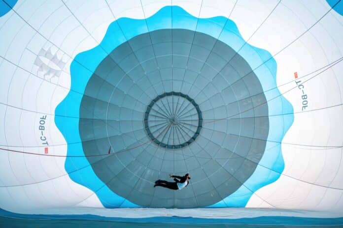La signature de Mathieu Forget devient rapidement ses postures en lévitation qui donnent le nom à l’exposition. L’athlète en lui est attiré par le challenge physique, l’artiste par la singularité de la création. « Quand on est sportif, on a toujours une volonté de se dépasser. Et je crois que c’est à travers le dépassement de soi-même que l’on peut convertir l’effort en légèreté. Or, la légèreté a un aspect artistique à mon sens », déclare-t-il. « Quand on voit les plus grands artistes comme les plus grands athlètes, ils pratiquent leur art avec une facilité déconcertante. Je pense qu’à travers la recherche de l’excellence et de la fluidité, la légèreté se crée ». Cette légèreté s’exprime dans son art aussi bien par l’architecture que par la posture ou le vêtement. « J’aime la beauté plus légère et minimaliste qui permet de respirer », ajoute l’artiste en mimant une expiration.