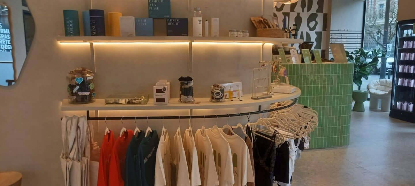 Mais The New Me, ce n’est pas que du sport et des gâteaux healthy. Tout un rayon propose des bijoux, des vêtements et des cosmétiques : « Vous y trouvez des marques exclusives parisiennes et françaises de crème au collagène Antipode, des bijoux, des chaussettes antidérapantes obligatoires pour le pilates, des leggings ou des compléments alimentaires de la marque AJY fondée par Alexandra Rosenfeld, la femme d’Hugo Clément », défend Julie.