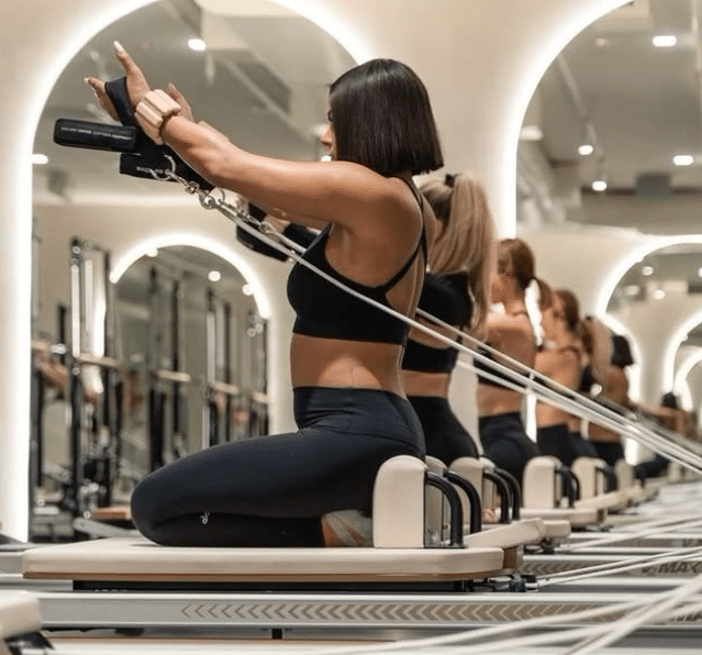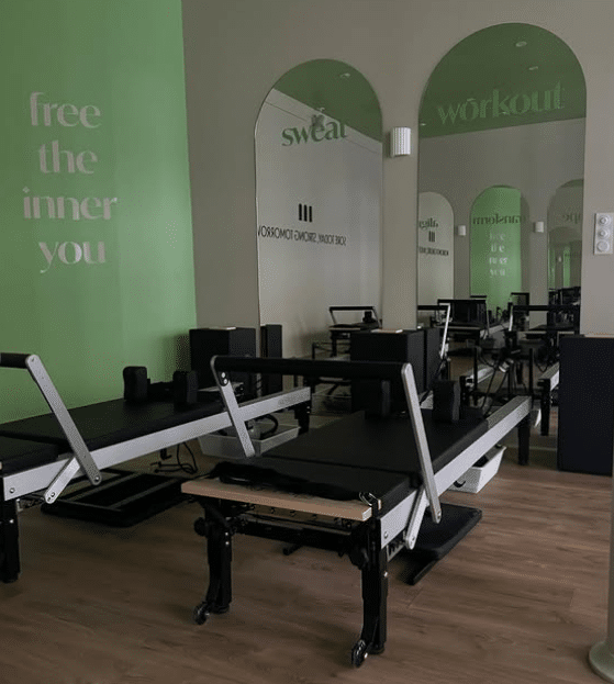 The New Me, et sa devanture verte, couleur fraîche et aérée, a ouvert jeudi 5 décembre 2024. Une fois la porte franchie, nous entrons dans une salle plus photogénique que chaleureuse… mais n’oublions pas que l’objectif premier est de se faire les muscles ! C’est au fond de la boutique que se trouve la salle de pilates et ses machines Reformer qui font face à un miroir avec les inscriptions : sweat, resist, sculpt, challenge. Ça donne le ton ! Inspirés de l’invention de Joseph Pilate il y a un siècle, ces espèces de rameurs modernisés promettent de tonifier et sculpter son corps, allonger ses muscles et améliorer sa posture. Il suffit de s’allonger, de pousser sur ses jambes ou ses bras. Plusieurs exercices de gainage ou avec des poids permettent un travail complet du corps. « Grâce à des ressorts réglables en fonction de son niveau, le corps reste toujours en tension », explique Julie. « Par rapport à d’autres machines de salle de sport qui forcent et cassent le muscle, nous proposons le reformer pilate comme alternative douce, qui s’adapte à tous niveaux », ajoute Alan.