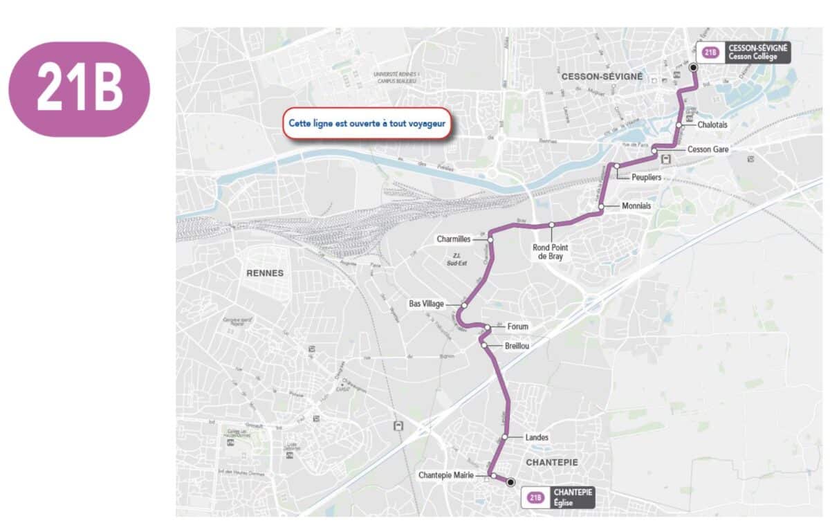 Création de 3 nouvelles lignes complémentaires : 20b, 21b et 22b. Ces 3 lignes offriront de nouvelles possibilités de déplacement aux heures de pointe, se substituant partiellement aux lignes 32 et 34 suspendues depuis le 3 janvier dernier afin de mieux desservir les établissements scolaires suivants : Lycée Sévigné et Collège Bourgchevreuil à Cesson-Sévigné (21b et 22b), collège du Landry (20b) à Rennes.La circulation complète des lignes 10, 32, 34 et navette centre-ville ne reprendra pas avant la remise en service du métro ligne b.