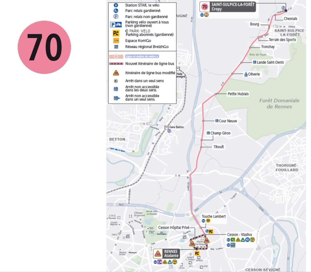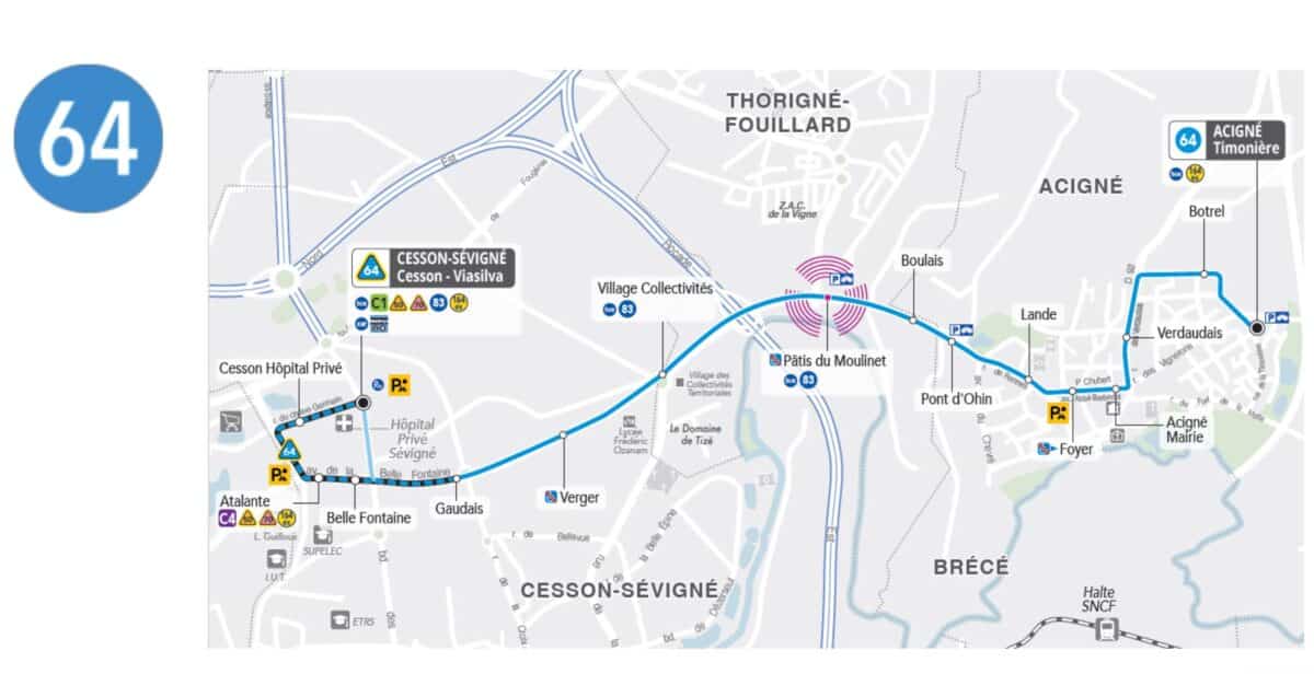 Les lignes 50, 64 et 70 (desservant Thorigné-Fouillard, Acigné et Saint-Sulpice-la-Forêt) desserviront la station Atalante, en complément de la station Cesson-Viasilva. Une connexion supplémentaire avec la ligne C4 sera ainsi proposée, permettant un accès plus rapide et fréquent au campus de Beaulieu et au centre-ville de Rennes.